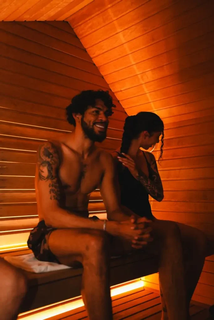 Move through 10–15 minute heat cycles, alternating with cold immersion. In the evening, opt for a longer, slower session to support nervous system down-regulation and deeper rest.